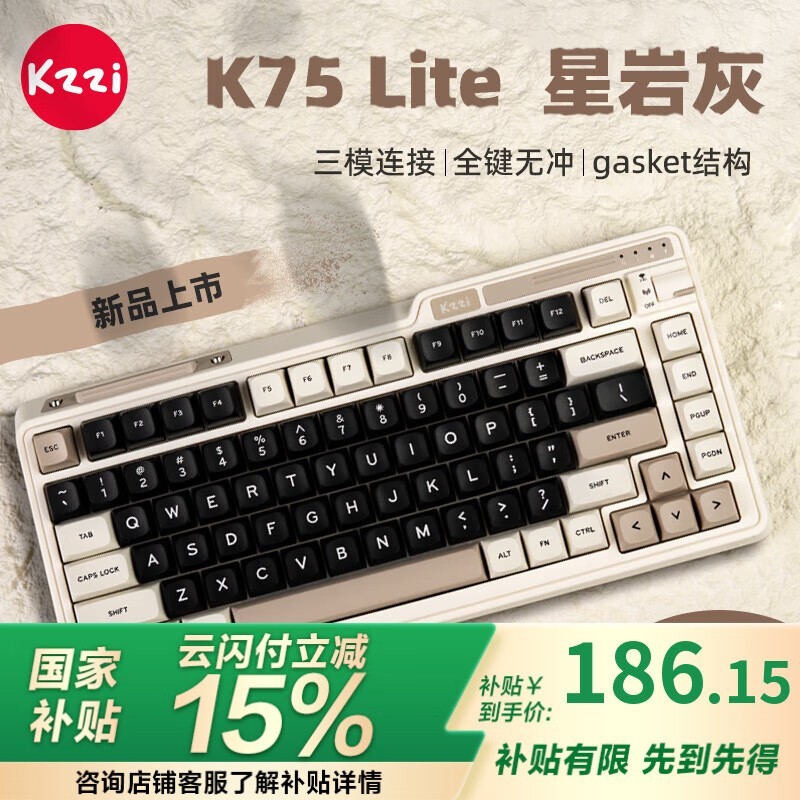 珂芝KZZI K75lite版三模机械键盘风暴轴轻盈手感