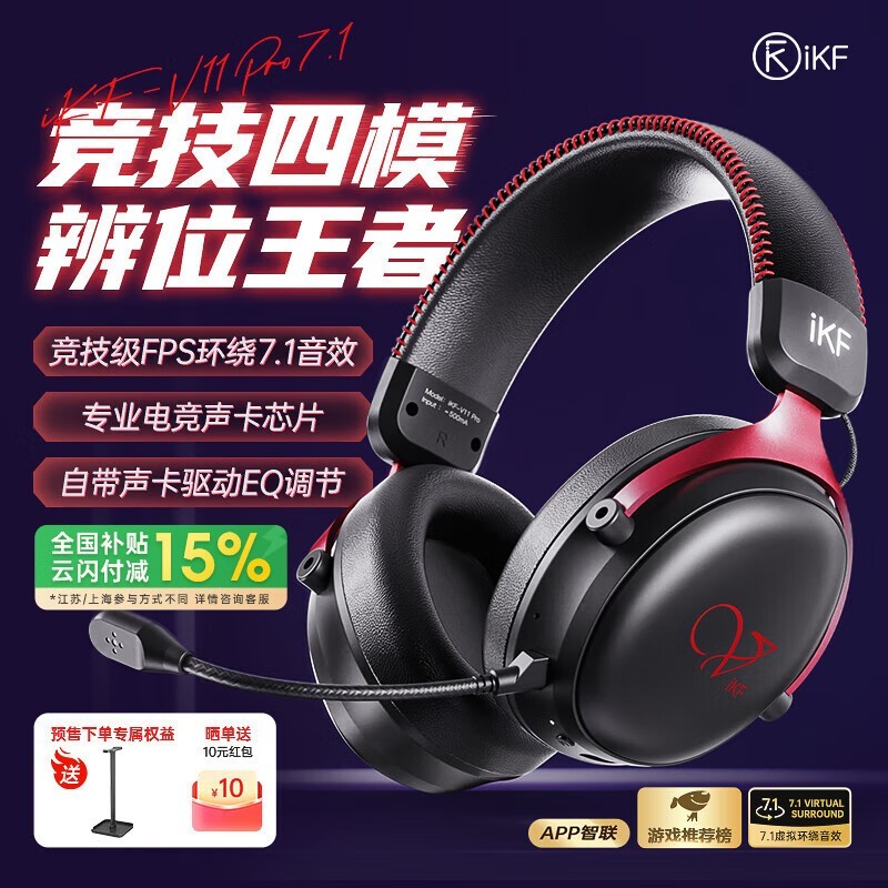 iKF V11 Pro四模无线游戏耳机7环绕音效仅141元