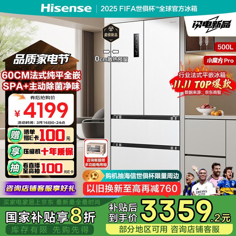 海信小魔方Pro冰箱京东促销,原价4699到手4199