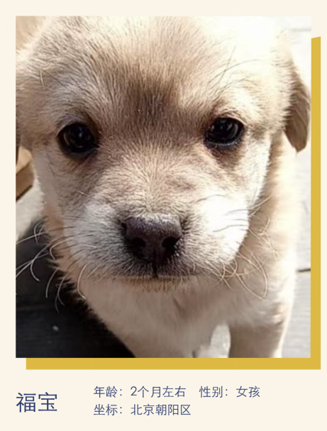 领养条件:北京本地领养;有稳定居所和收入;签订领养协议;留身份证照片;视频家访、领养后回访;科学喂养、按时免疫驱虫。