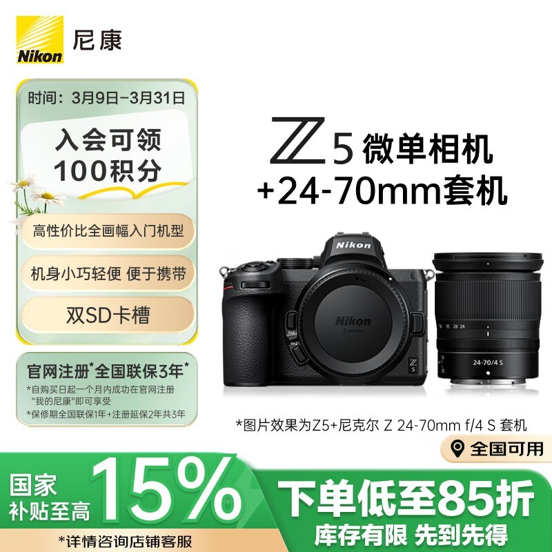 尼康Z5套机京东促销 原价10399到手8710.38