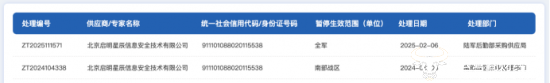2月20日,该项目发布一则更正公告,变更原因是北京启明星辰信息安全技术有限公司被暂停投标,随后中标单位变为了排名第二的北京神州绿盟科技有限公司,成交金额1266.76万。