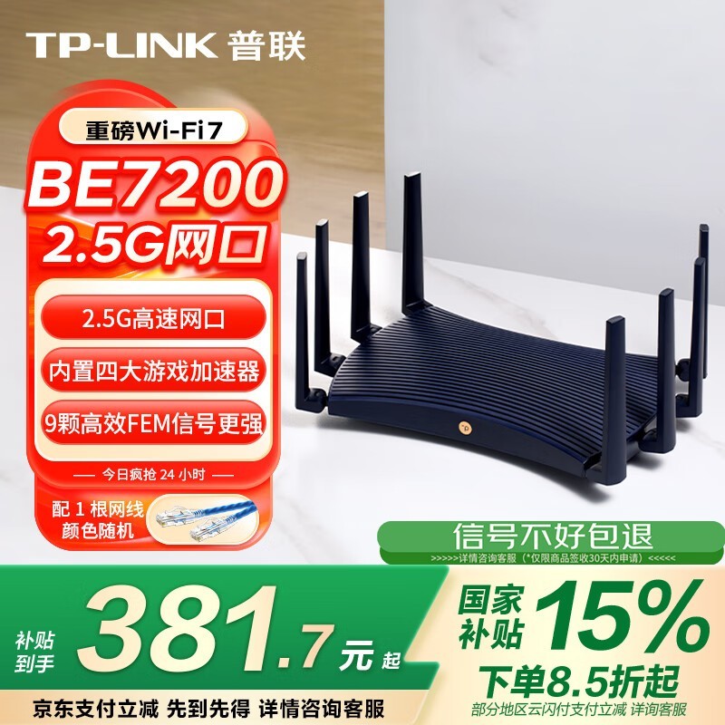 TP-LINK BE7200千兆Mesh路由器Wi-Fi7技术双频6500M