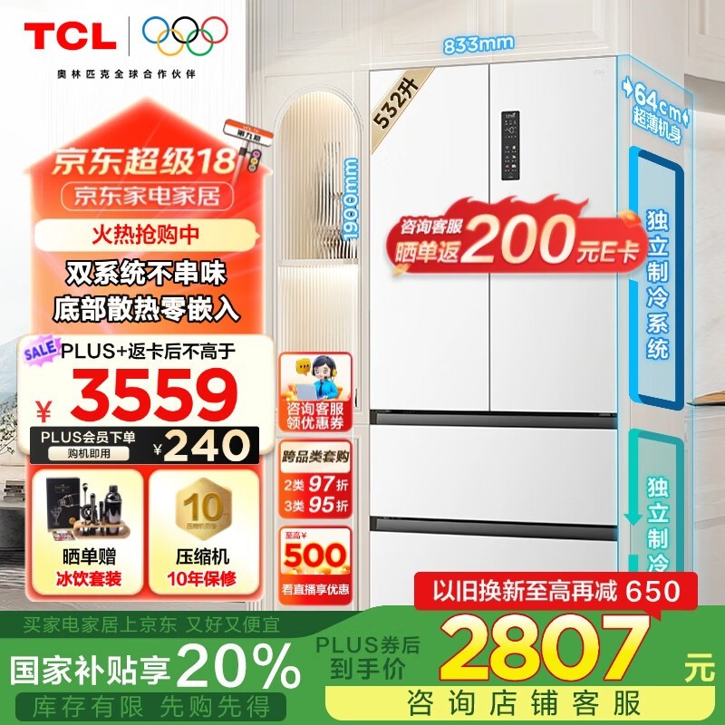 TCL T9 Pro冰箱532升3759元超值入手