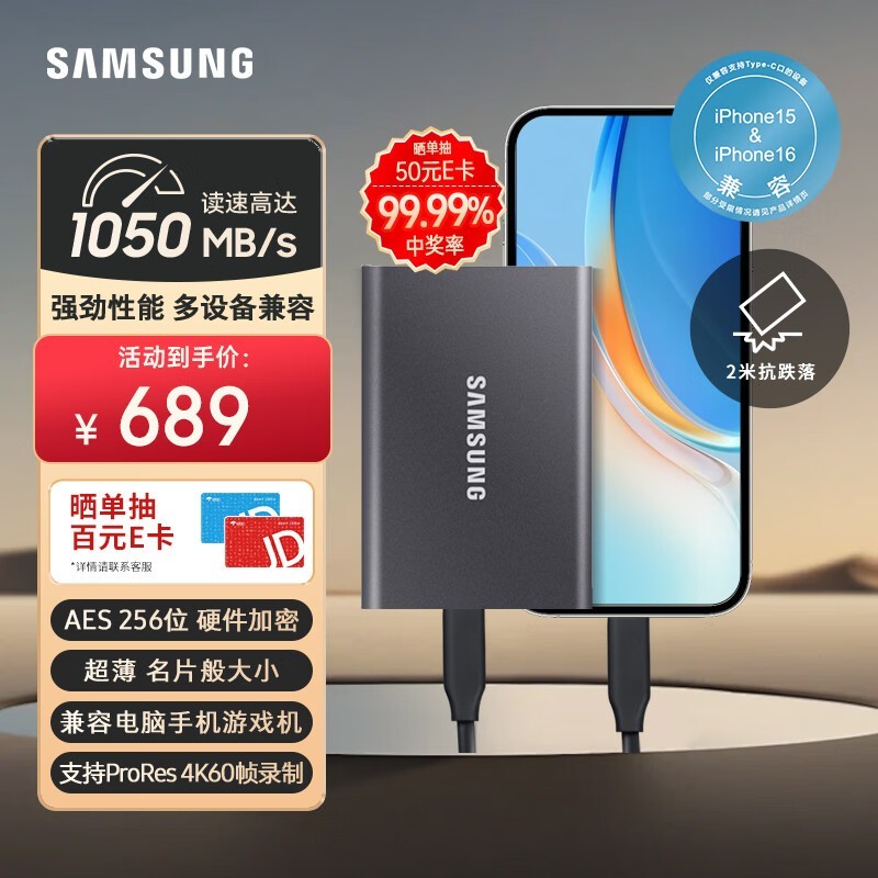 三星T7移动固态硬盘1TB京东促销仅689元