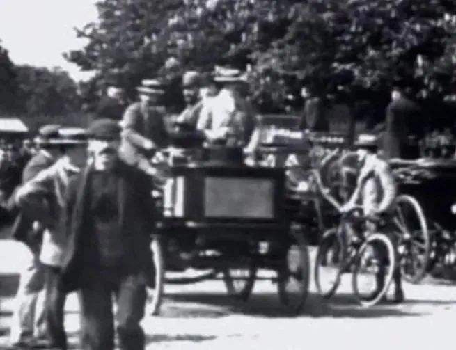 早期纪录片《汽车》(Voitures automobiles,1896)中的机动车影像。