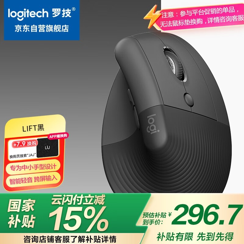 罗技Lift无线鼠标黑色款京东优惠价265元