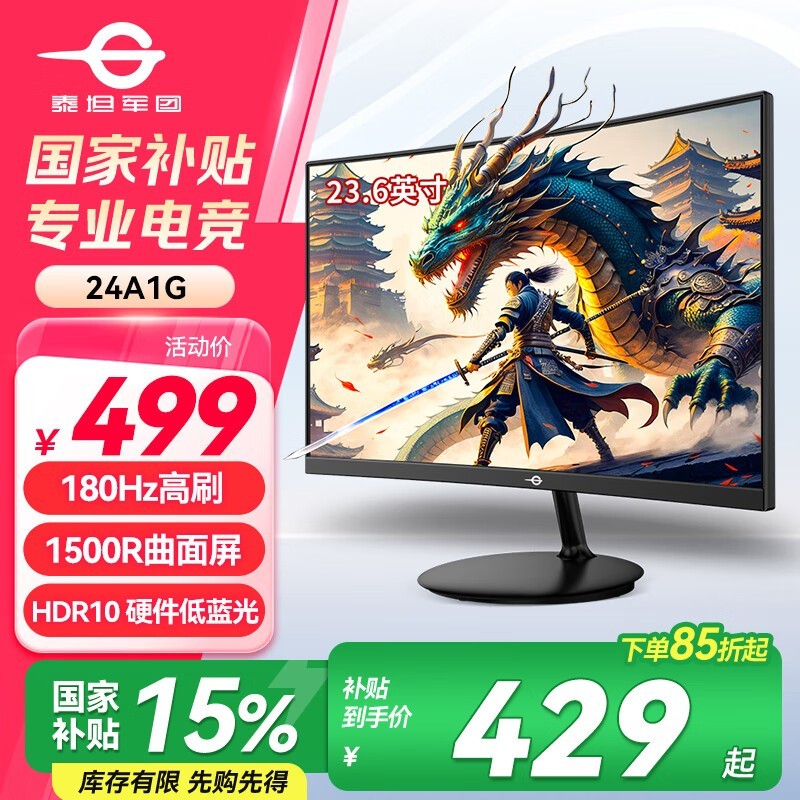 泰坦军团23.6英寸电竞显示器京东499元热卖