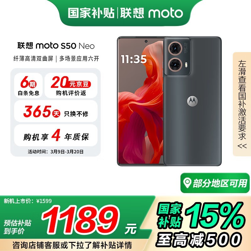 摩托罗拉moto S50 Neo 5G(12GB+256GB即墨款)促销价1349元