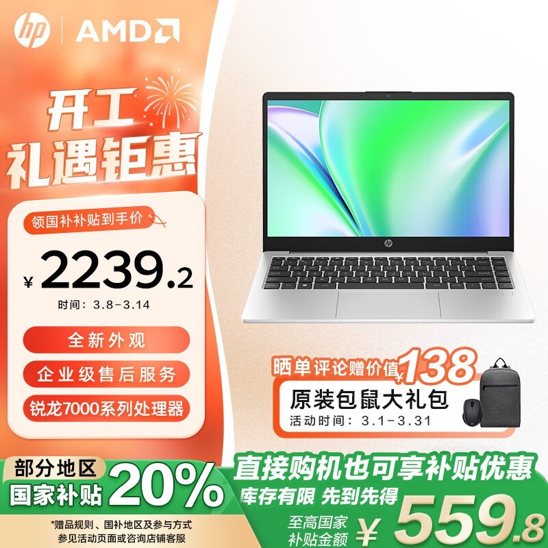 惠普锐14 2023款七代锐龙本京东促销价2228元