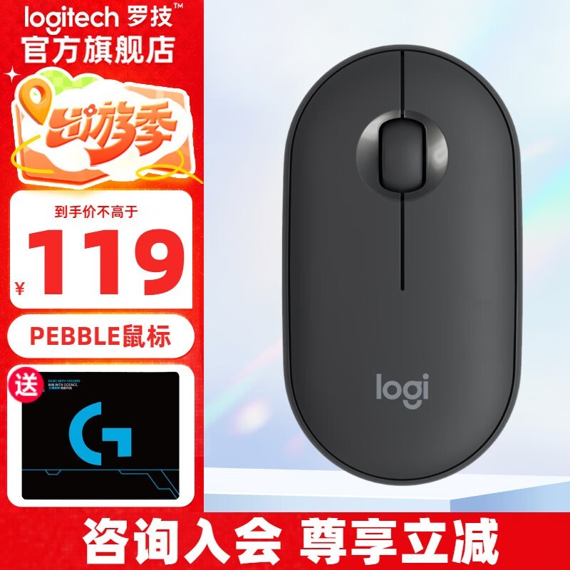 罗技LogitechPEBBLE无线蓝牙双模鼠标时尚静音促销