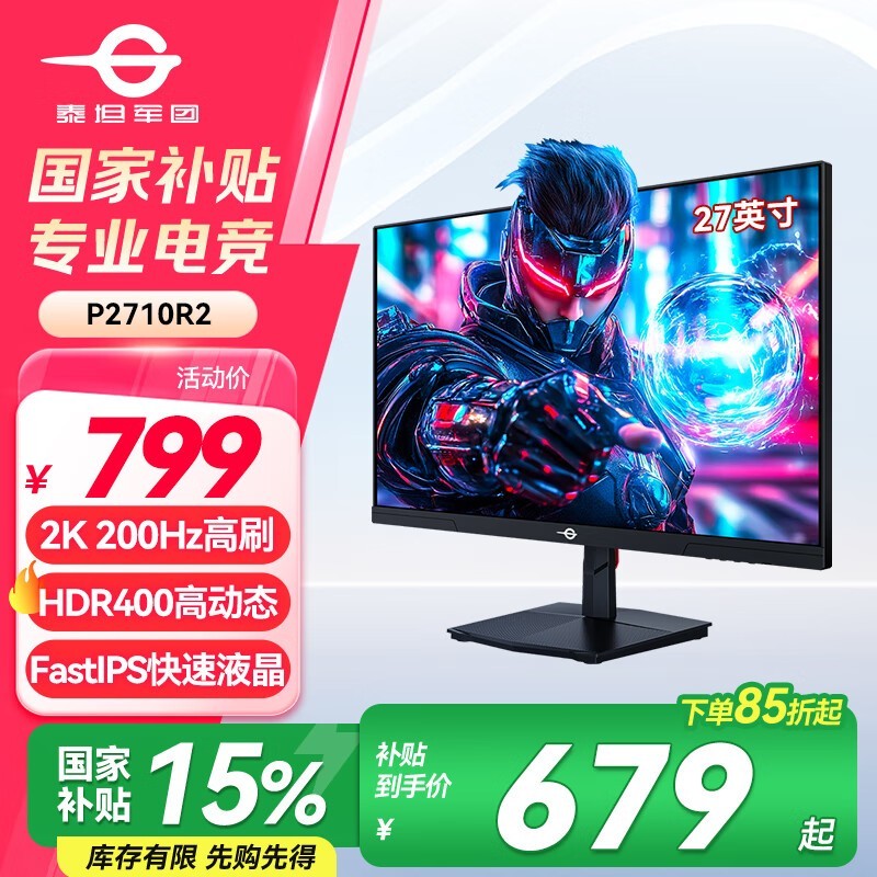 泰坦军团P2710R2电竞显示器促销仅637元晒单送20元e卡