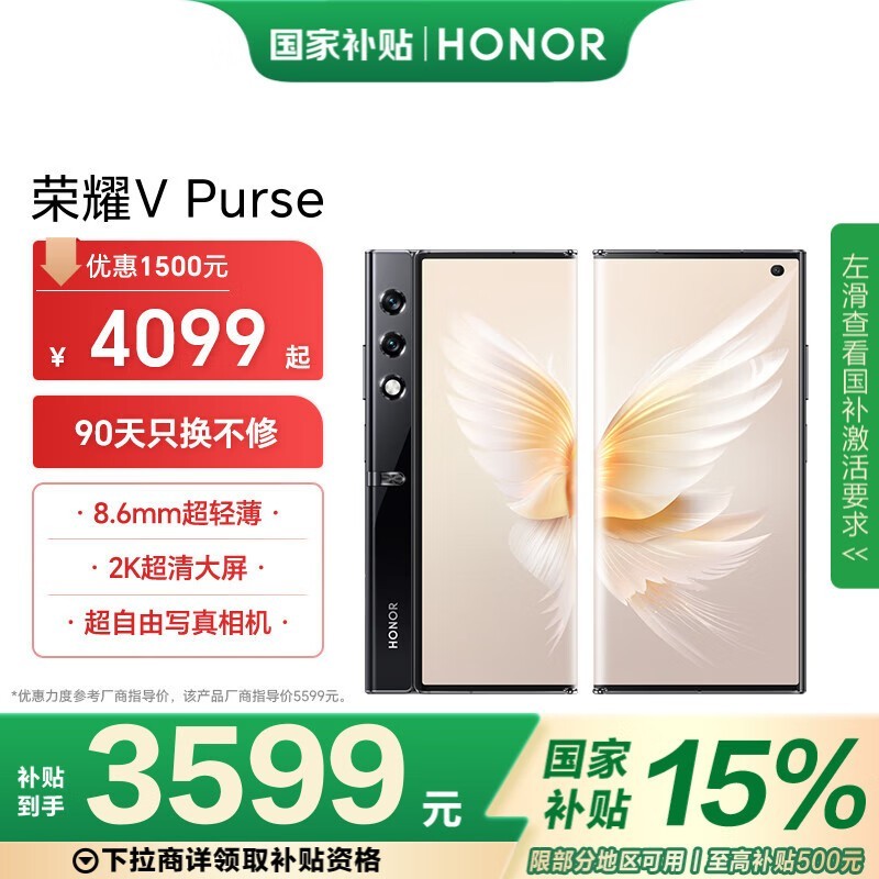荣耀V Purse折叠屏手机京东优惠价3578元