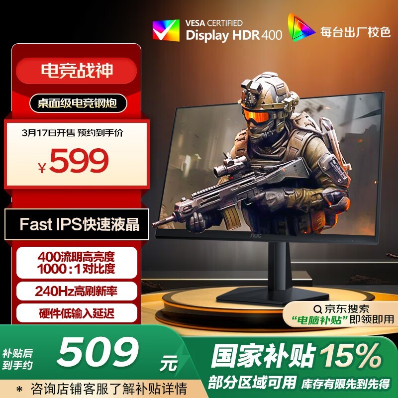 AOC 24G10ZE电竞显示器京东优惠价489元