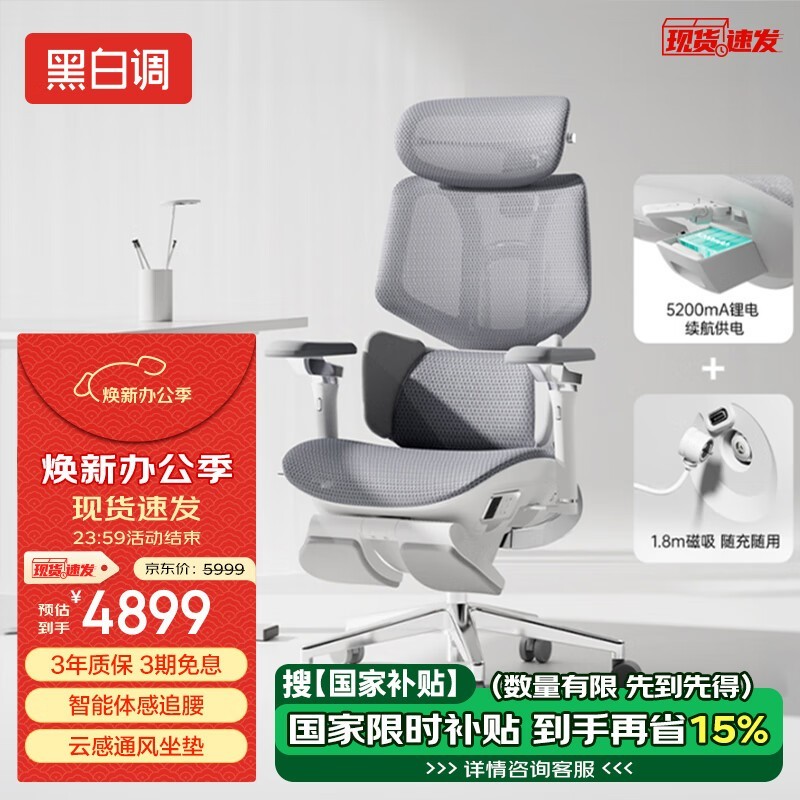 黑白调X7高端智能人体工学椅脚托电池款促销