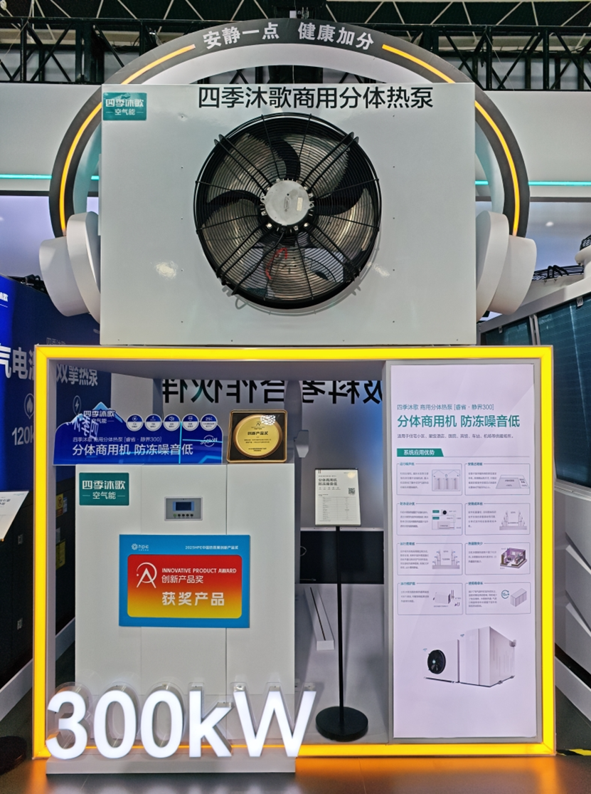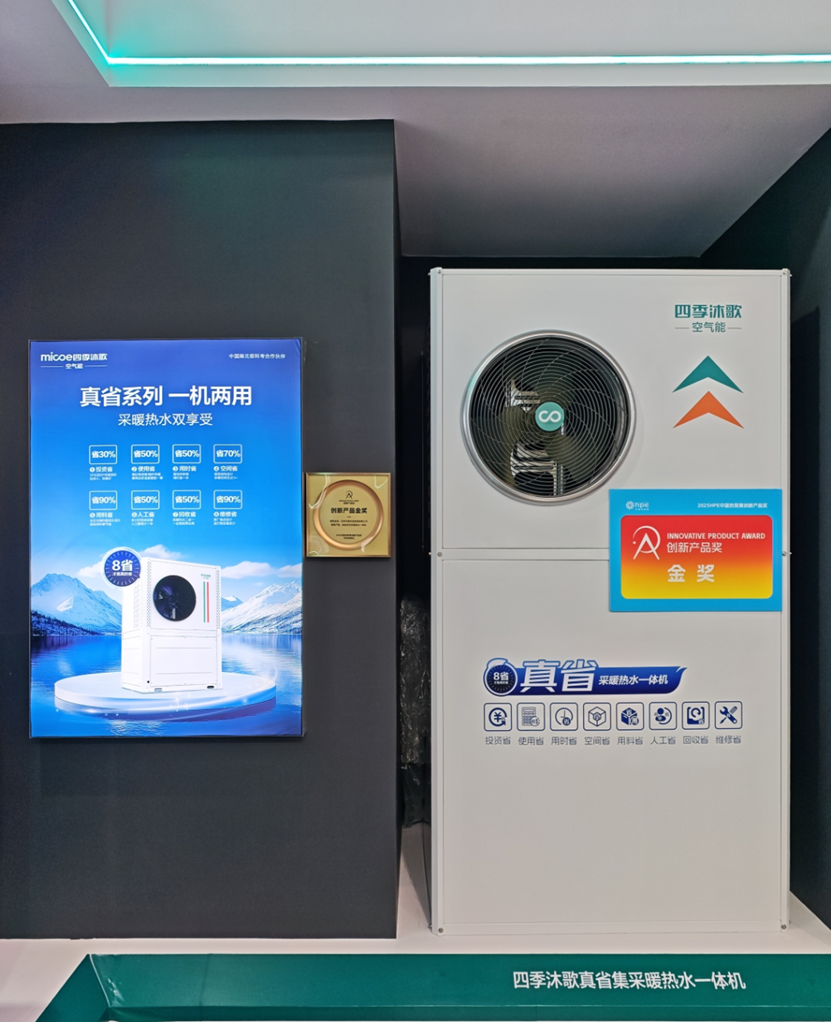 展会现场,四季沐歌空气能真省系列采暖热水一体机、分体式空气能热泵机组荣获“2025HPE中国热泵展创新产品金奖”,展现了创新成果与行业引领地位。四季沐歌空气能展区的全系列产品矩阵涵盖家居、小区、商业、工业采暖及光储充热解决方案,展示了技术积累与创新成果,为供热行业低碳转型提供新路径。
