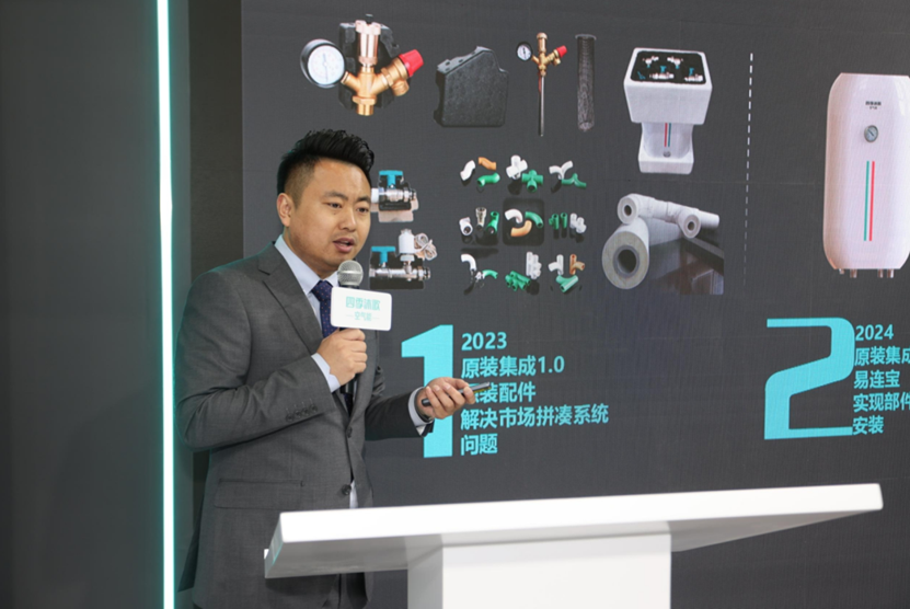 四季沐歌集团产品及系统开发中心部部长王帅推介的空气能原装采暖系统易连系列,2小时即可快速安装,当天实现采暖,比同类产品节能20%,提供6年全套保修服务,耐用且性价比高。