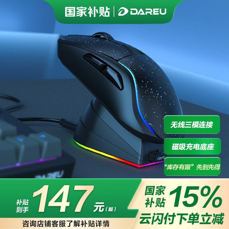 达尔优A950多模无线鼠标仅需132元