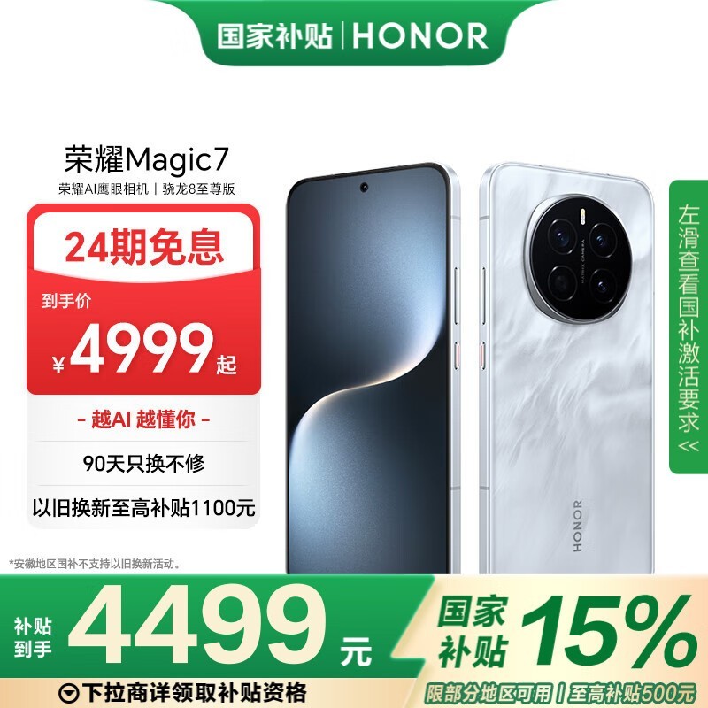 荣耀Magic7 16GB+512GB 5G手机京东优惠价4029元