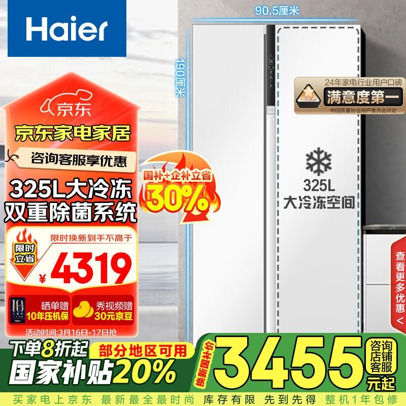 海尔621L风冷对开门冰箱京东优惠价3137元