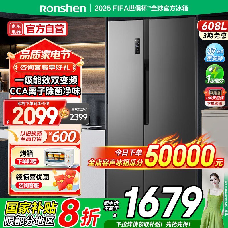 容声净味系列对开门冰箱608升双变频京东促销2099元