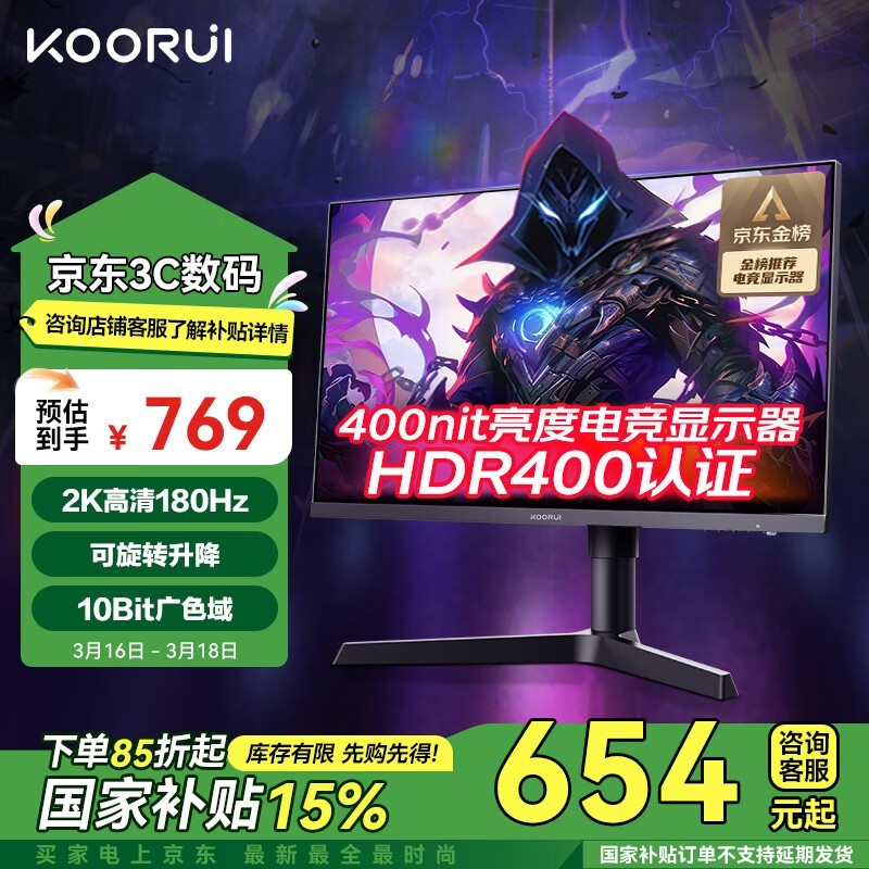 科睿 X41Q 显示器,2K 180Hz仅628元超值入手