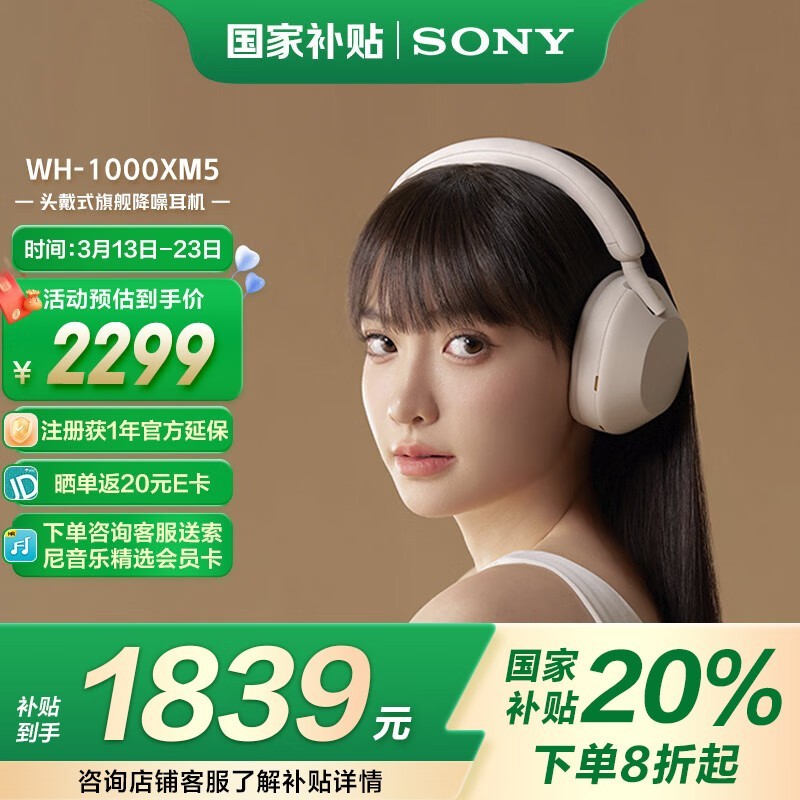 索尼WH - 1000XM5米色头戴耳机超值优惠