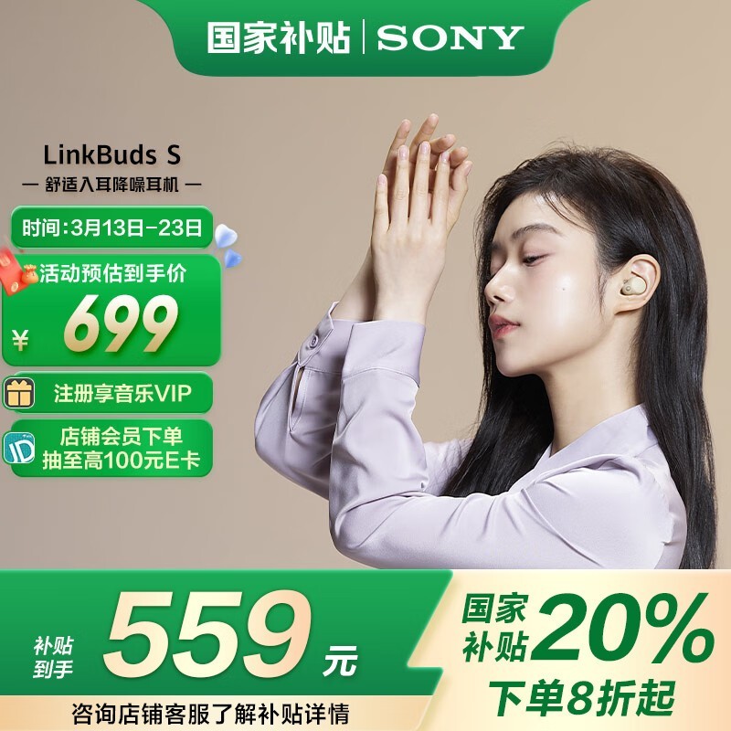 索尼LinkBuds S真无线降噪蓝牙耳机音质续航舒适佩戴