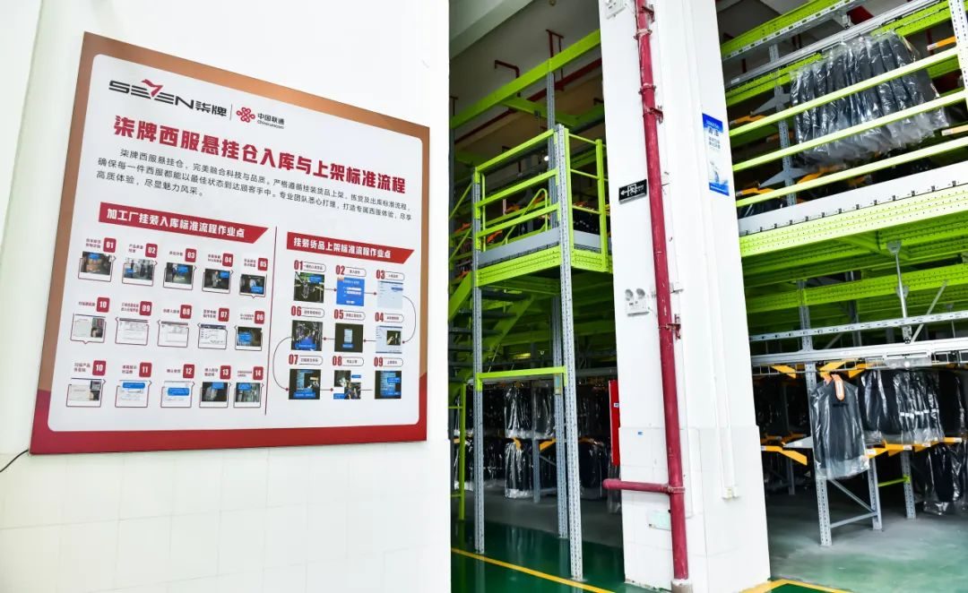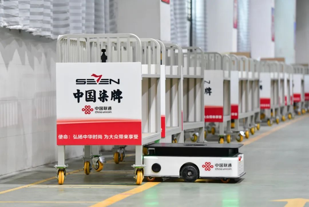据悉,柒牌服装从2023年便与中国联通联手建设智能化生产系统,如今已建立起覆盖生产、物流、办公等各环节的整体智能生态圈。智能排产、智能裁剪、智能吊挂、智能物流、智能仓储……这一系列智能化设备的建设,使得柒牌的生产效率提升了18%,人工成本降低了70%。并在各个环节实现了数字化管理和自动化操作。