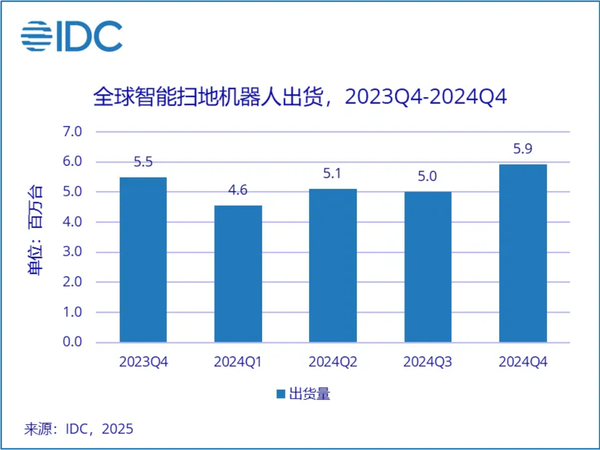 【CNMO科技消息】IDC最新发布的《全球智能家居设备市场季度跟踪报告,2024年第四季度》显示,2024年全球智能扫地机器人市场表现强劲,全年出货量达到2060.3万台,同比增长11.2%,销额更是实现了19.7%的增长,达到93.1亿美金。这一增长主要得益于消费者对智能家居产品的需求提升以及扫地机器人技术的不断升级。