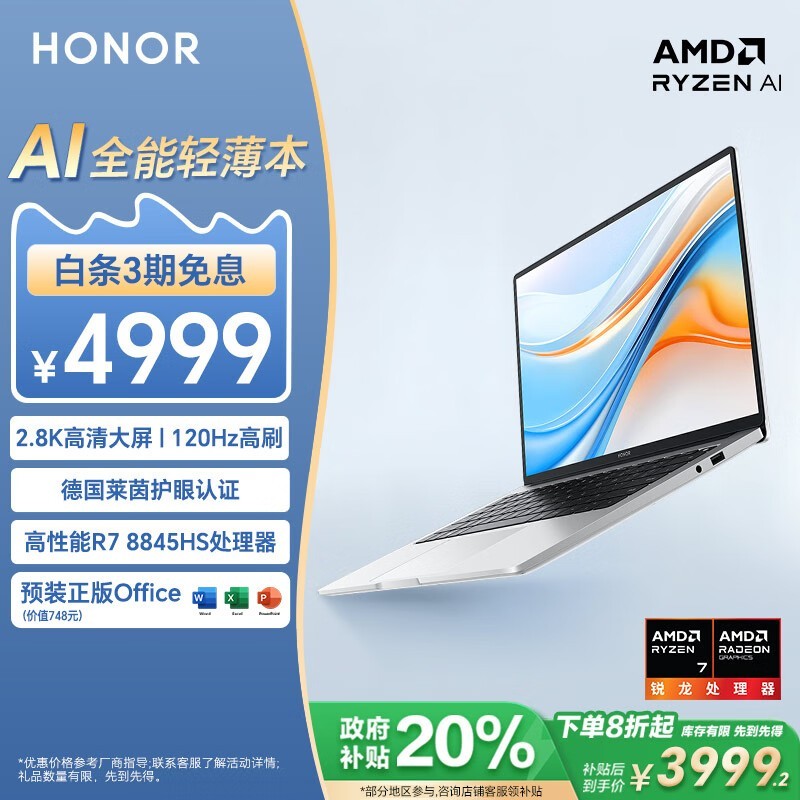 荣耀HONOR X14 Plus 2024款锐龙本京东促销价3999元