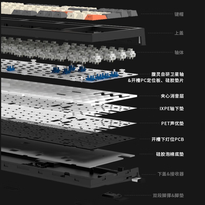 腹灵FL980V2Pro三模机械键盘黑曜石墨影侧刻青轴版