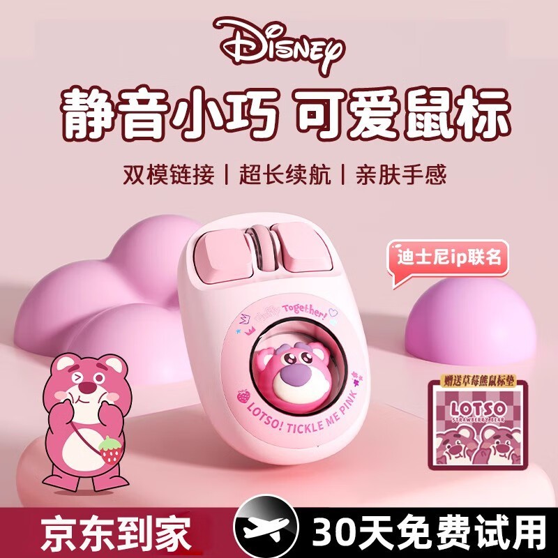 迪士尼粉色草莓熊无线鼠标:时尚女性之选,双模连接,人性化设计长续航