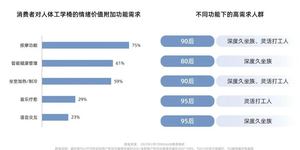 从深度久坐人群到灵活打工人及学习备考党,从办公、书房场景到游戏、创作、午休等细分场景,消费者的座椅使用需求日趋灵活化、复合化。