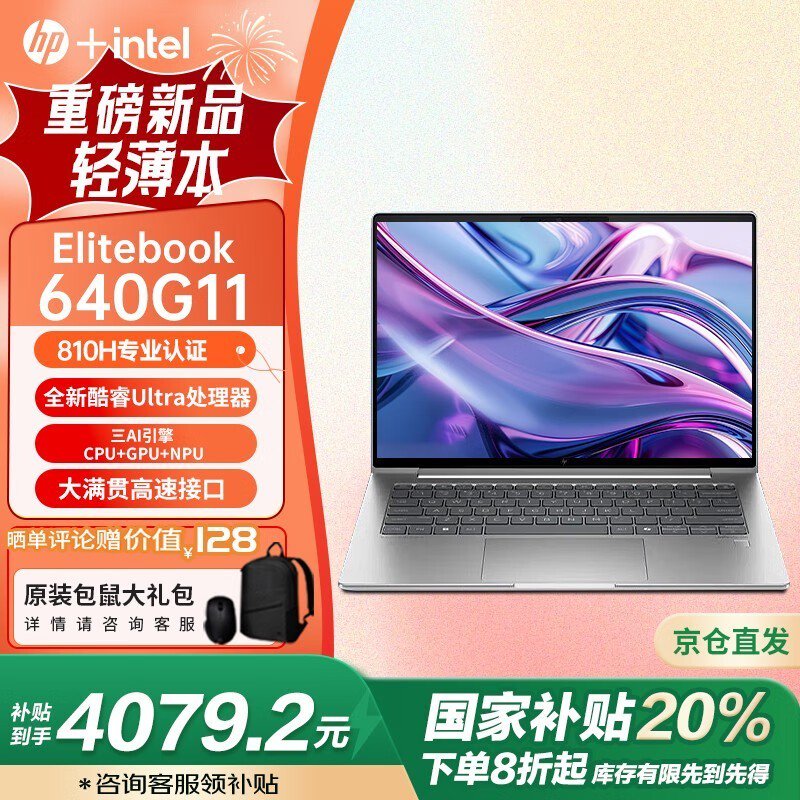 惠普精英版 Elitebook640G11:轻薄高效,Intel强芯+SSD大内存,5099元起的商务出行利器