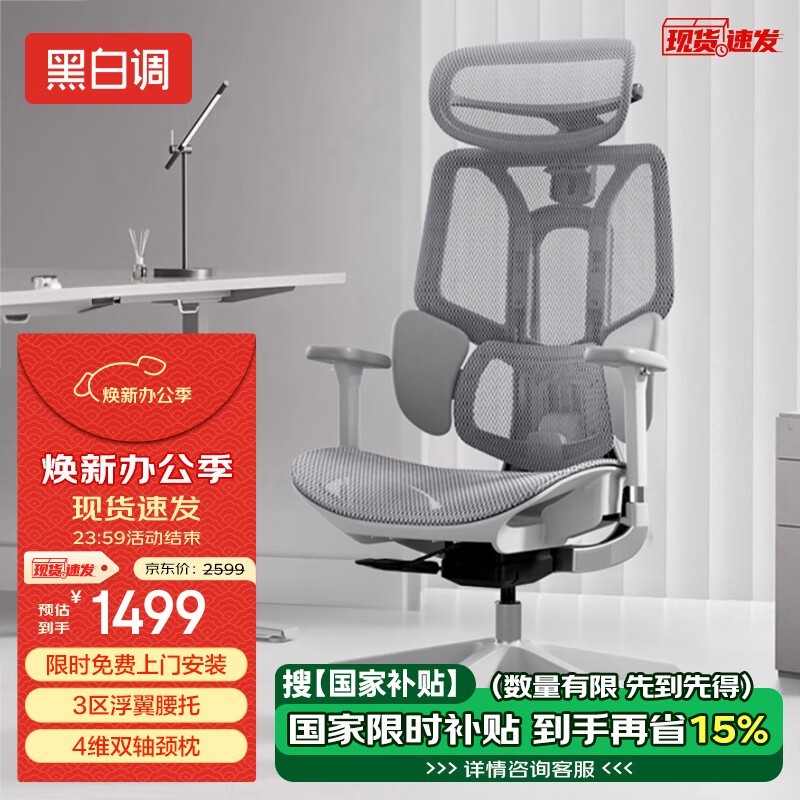 黑白调E3结构大师人体工学椅京东促销信息