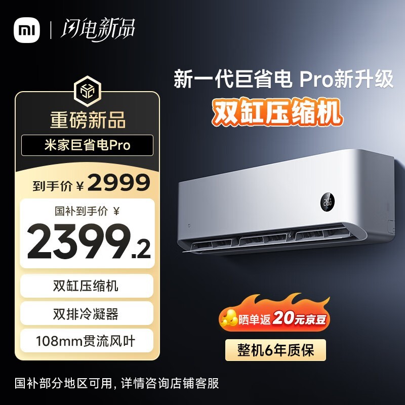 小米Xiaomi巨省电Pro系列空调2匹新一级能效仅2349元