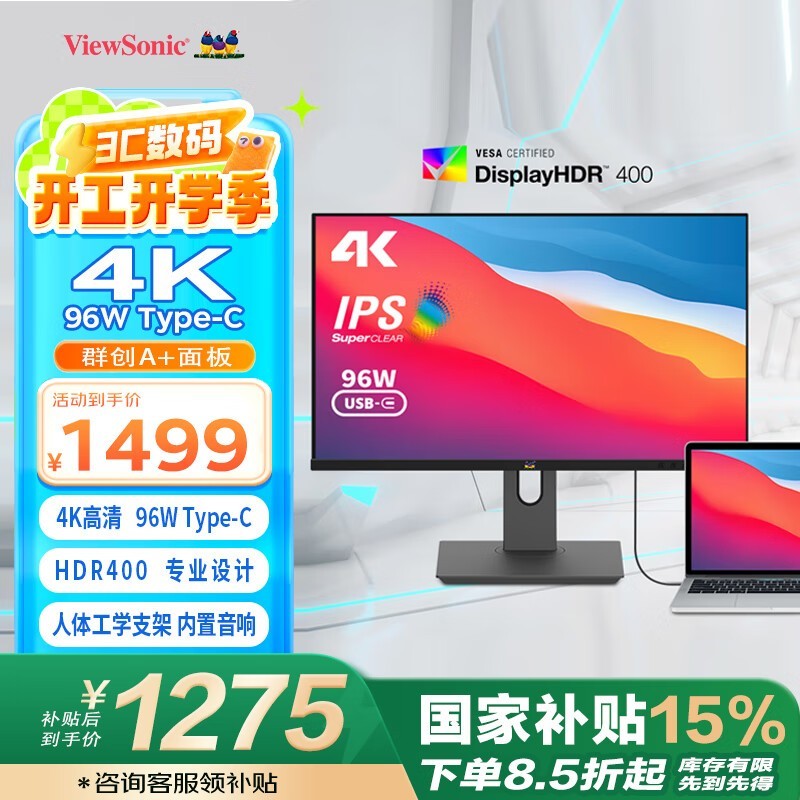 优派VX2781-4K显示器京东特价1250元到手