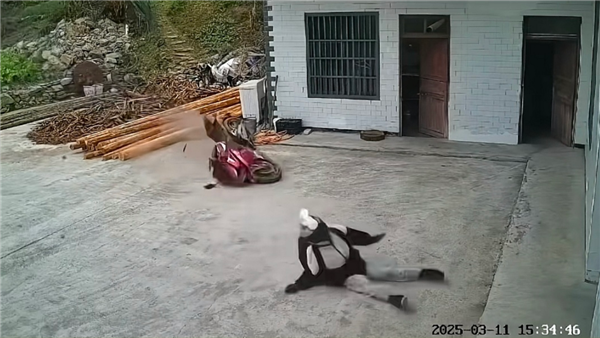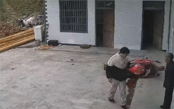 巧合的是,男子直接被摔到了屋里,而他的摩托车则撞到了墙停了下来,听到动静后,这户人家出来不少人查看发生了什么,他们甚至还没有意识到有个陌生人摔到了自家屋里。