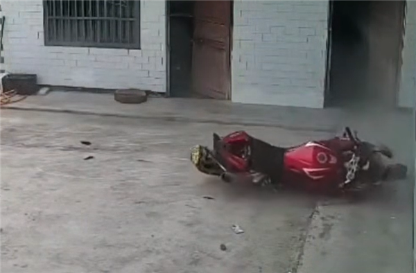 撞击力度非常大,连人带摩托都飞到了空中,同时还伴随着巨大的响声,而男子则直愣愣冲着别人家院子就飞了过去。