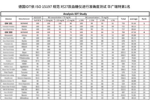 在德国IDT对27型血糖仪准确度测试中,华广瑞特血糖仪夺得了第一名的佳绩,其精准度得到了国际权威机构的高度认可。