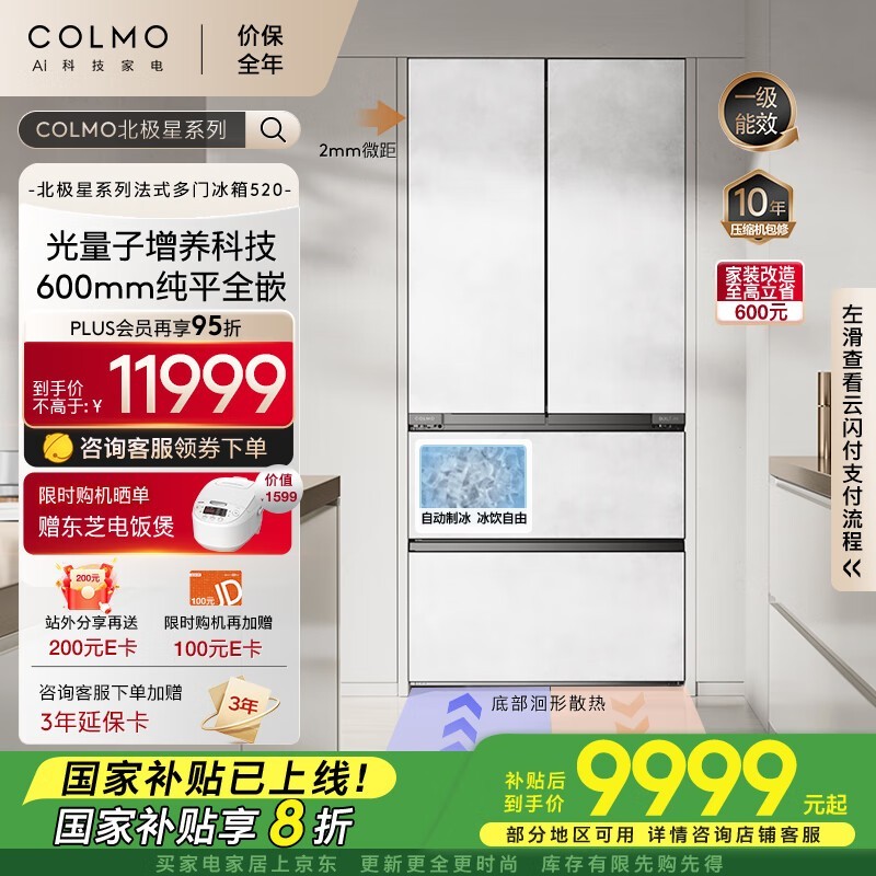 COLMO北极星520升法式冰箱双系统双循环超薄零嵌促销