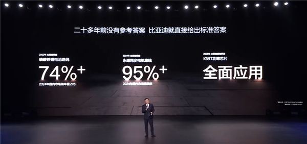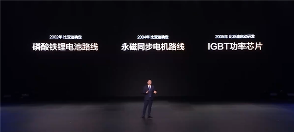 王传福称,早在2002年,比亚迪就确定了磷酸铁锂电池路线,2004年确定永磁同步电机路线,2005年研发了IGBT功率芯片。
