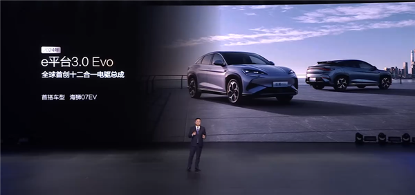 2024年,比亚迪发布e平台3.0Evo,全球首创十二合一电驱总成,首发海狮07EV。