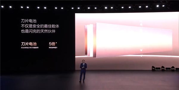 比亚迪还称,刀片电池不仅是安全的最佳载体,也是闪充的天然伙伴,刀片电池天生对称设计利于热量疏导,导热效率提升5倍,并且利用2021年首创的动力电池直冷直热技术,实现了冷媒相变、高效换热,确保电池安全。