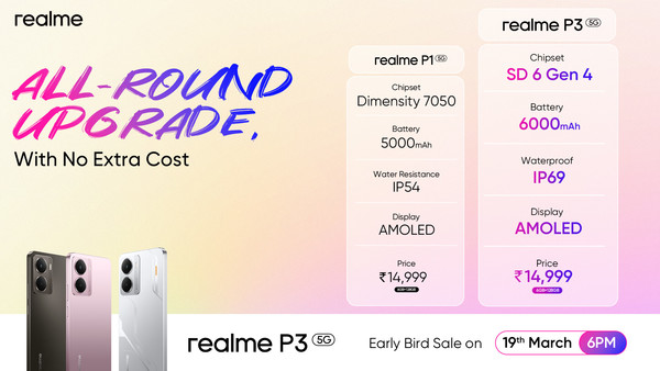 【CNMO科技消息】3月17日,realme真我今日在海外市场正式推出新机P3,作为realme真我旗下最新的中端5G机型,该机型拥有高刷AMOLED屏、骁龙6 Gen 4处理器、6000mAh大电池以及 IP68/69 级防尘防水,成为同价位中较为全面的一款产品。