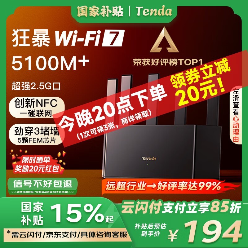 腾达BE5100 BE6L Pro路由器京东晚8点超值优惠