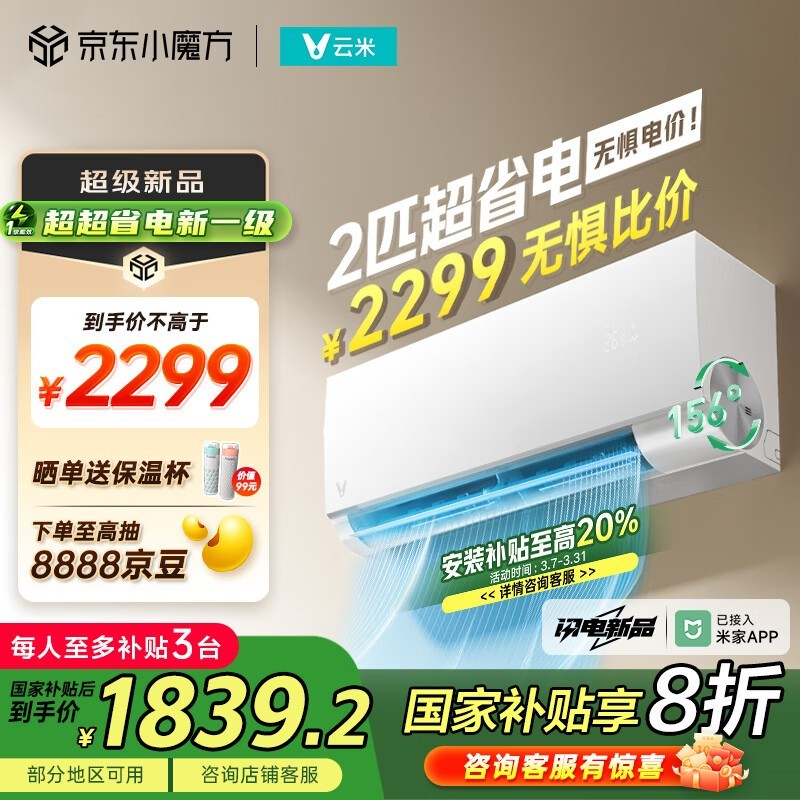 云米2匹空调挂机,多种优惠后仅1701元