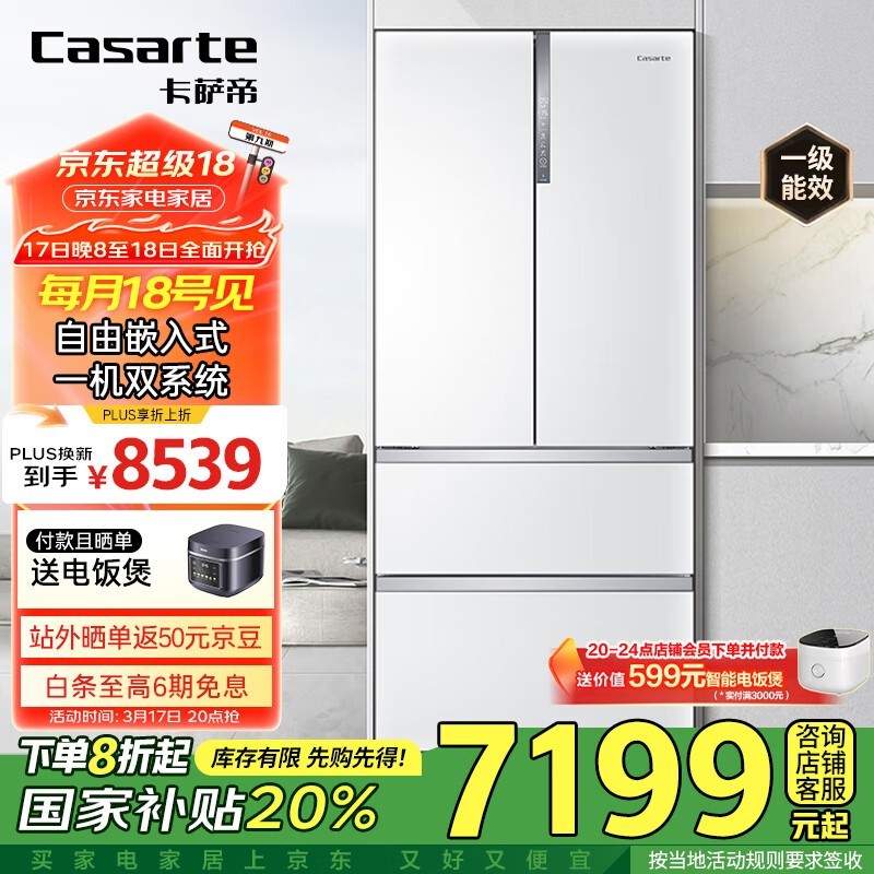 卡萨帝555L风冷多门冰箱京东优惠价5765元