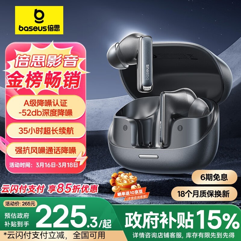 倍思M2s Pro蓝牙耳机主动降噪音质出众促销到手212元